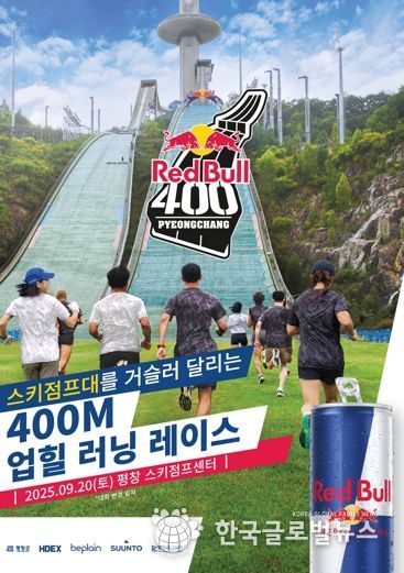레드불 40』은 2011년 오스트리아에서 처음 시작된 익스트림 러닝 대회로, 최대 38도 경사의 스키점프대를 역주행해 건물 40층 높이에 해당하는 결승점까지 가장 일찍 도착하는 참가자가 우승하는 경기다. 평창군은 2018 평창 동계올림픽 이후 올림픽 유산을 활용한 지역 활성화 사업의 하나로 레드불 400 평창 대회를 이어오고 있으며, 2019년 국내 최초 개최를 시작으로 2024년에 이어 올해에도 많은 관심과 열기를 모았다.