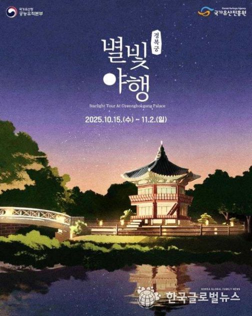 (한국글로벌뉴스 - 박소연 기자) 국가유산청 궁능유적본부는 국가유산진흥원과 함께 10월 15일부터 11월 2일까지 매주 수~일요일 경복궁 북측 권역(서울 종로구)에서 2025년 하반기 '경복궁 별빛야행'을 개최한다.