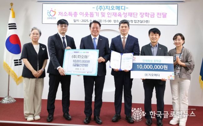 이에 대해 이병준 안양시인재육성재단 대표이사는 “㈜지오메디의 따뜻한 나눔이 저소득층과 미래 인재들에게 큰 힘이 될 것”이라며 “전달된 성금은 장학사업과 복지 지원에 소중히 사용하겠다”고 감사의 뜻을 전했다.