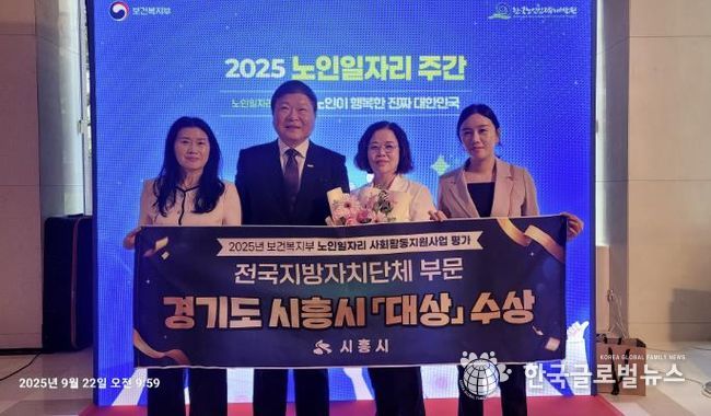 (한국글로벌뉴스 - 박소연 기자) 시흥시는 보건복지부가 주관한 ‘2025년 노인일자리 및 사회활동 지원사업 평가'에서 전국 226개 지자체 중 최고 등급인 '대상'을 수상했다.