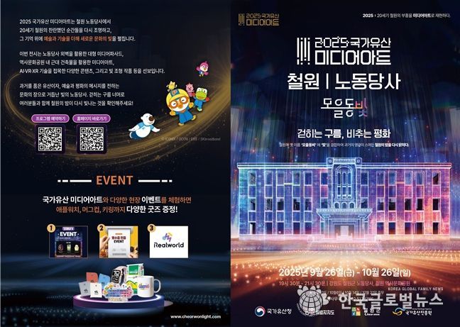 (한국글로벌뉴스 - 김정현 기자) 철원군이 오는 9월 26일부터 10월 26일까지 한 달간 ‘2025 국가유산 미디어아트 철원 노동당사' 행사를 개최한다고 발표했다. 이번 행사는 철원 노동당사와 철원역사문화공원 일대에서 오후 7시 30분부터 9시 30분까지 진행되며, 철원의 야간 관광 활성화를 위한 새로운 시도로 주목받고 있다.