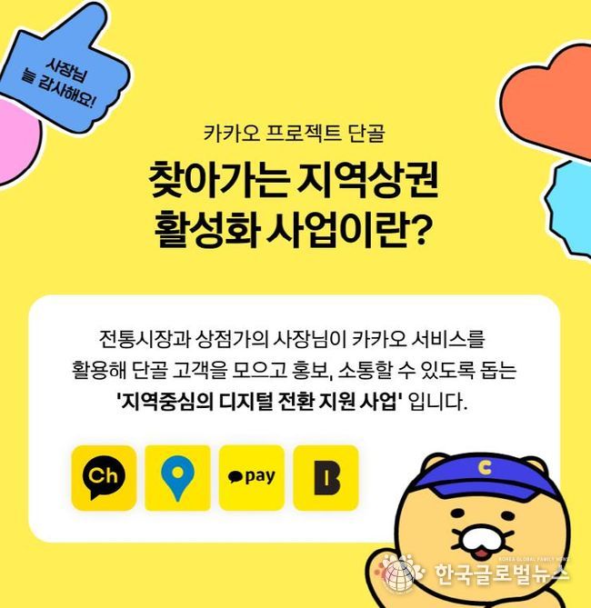 이번 사업은 카카오톡 채널과 카카오맵, 카카오스토어, 예약하기 등 다양한 디지털 서비스를 활용해 상인들이 단골 고객을 확보하고 소통을 강화할 수 있도록 돕는 사업이다.