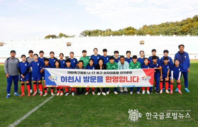 (한국글로벌뉴스 - 박지형 기자) 10월 17일부터 개최되는 FIFA-U17 모로코 여자월드컵을 앞두고 훈련 중인 U-17 대한민국 여자축구대표팀이 이천시에서 훈련하고 있는 가운데 김경희 이천시장이 선수단을 직접 찾아 격려했다.