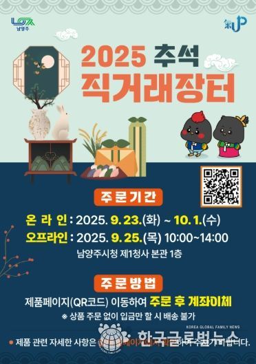 (한국글로벌뉴스 - 박종욱 기자) 남양주시는 추석 명절을 맞아 10월 1일까지 관내 중소기업 제품을 홍보하고 판매하는 ‘명절 직거래장터’를 운영한다고 23일 밝혔다.