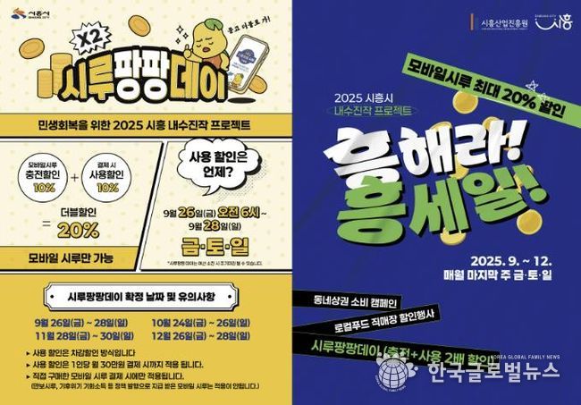 시흥시는 지난 달 말부터 지역화폐 모바일 시루를 최대 20% 할인하는 이벤트 ‘시루팡팡데이’를 추진 중이다. 사실상 시흥시의 2025년 하반기 상권 활성화 사업의 핵심인 이번 이벤트는 시흥시 지역화폐 모바일 시루를 충전 시 7~10%, 시루 가맹점에서 결제 시 추가로 7~10%할인 하는 것을 골자로 한다.