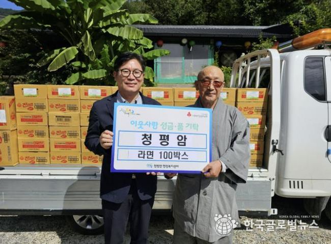 (한국글로벌뉴스 - 박소연 기자) 가평군 청평면에 위치한 청평암은 최근 추석 명절을 앞두고 지역 내 어려운 이웃을 위해 라면 100박스를 청평면 행정복지센터에 기탁했다.