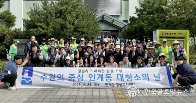 (한국글로벌뉴스 - 박소연 기자) 수원시 팔달구 인계동은 지난 23일 오전, 인계동 수원시청 부근 인계박스 및 장다리로 일대 등 화단과 대로변을 중심으로 인계동 단체, 환경 관리원 및 주민 등 70여 명과 함께 추석맞이 일제 대청소를 실시했다.