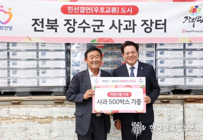 (한국글로벌뉴스 - 박소연 기자) 안양시는 전북 장수군으로부터 지역 특산물인 사과 500박스(1,500만원 상당)를 기부받아 관내 사회복지시설에 전달했다고 24일 밝혔다.