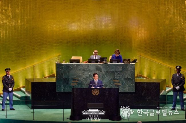 (한국글로벌뉴스 - 박소연 기자) 이재명 대통령이 23일(현지시간) 최대 다자외교 무대인 제80차 유엔총회 기조연설을 통해 이재명정부의 한반도 정책 구상이 담긴 'E.N.D 이니셔티브'를 제시했다.