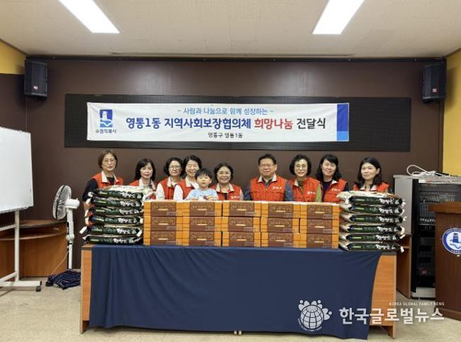 (한국글로벌뉴스 - 박소연 기자) 지난 24일 수원특례시 영통구 영통1동 행정복지센터에서 추석 명절을 맞아 지역사회보장협의체 주관 이웃돕기 전달식을 진행했다.