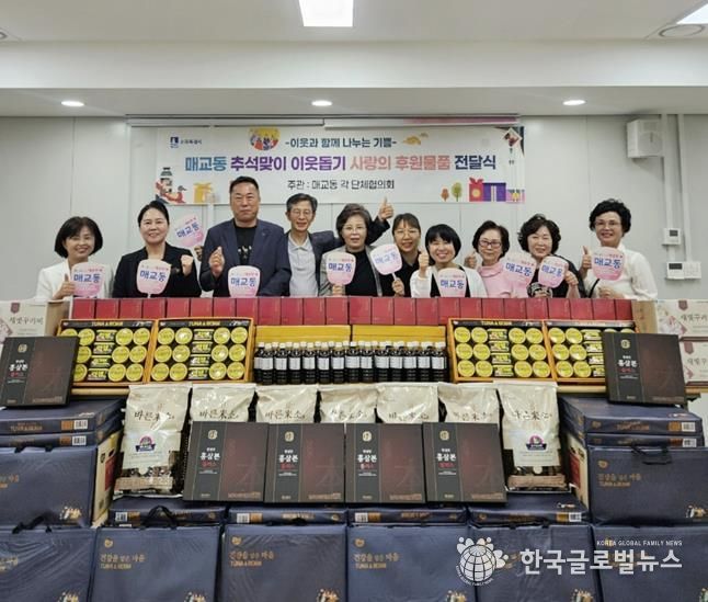 (한국글로벌뉴스 - 박소연 기자) 지난 24일 수원시 팔달구 매교동행정복지센터는 추석 명절을 맞이하여 관내 소외되는 어려운 이웃이 없도록 추석 명절 맞이 사랑의 후원물품 전달식을 가졌다.