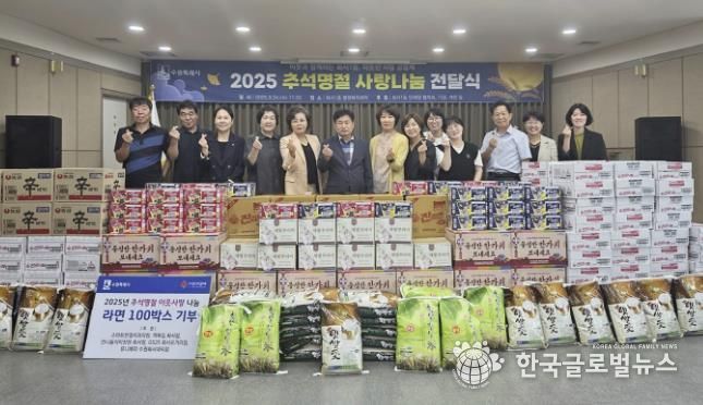 (한국글로벌뉴스 - 박소연 기자) 수원시 팔달구 화서1동 행정복지센터는 지난 24일, 추석 명절을 맞아 지역사회 이웃들에게 따뜻한 사랑을 전하는 '추석 명절 사랑 나눔 전달식'을 진행했다. 이번 행사에는 다양한 후원자들이 참여해 어려운 이웃들과 함께 나누는 뜻깊은 시간을 만들었다.