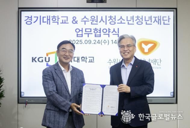 (한국글로벌뉴스 - 박소연 기자) 수원시청소년청년재단과 경기대학교는 9월 24일, 경기대학교 총장실에서 청소년과 청년의 상호 성장을 지원하기 위한 업무협약(MOU)을 체결했다.