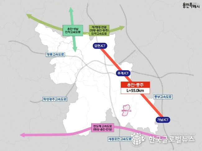 (한국글로벌뉴스 - 박소연 기자) 용인특례시는 25일 국토교통부 의뢰로 민간투자적격성 조사에 들어간 '용인~충주 고속도로' 사업이 최종 통과됐다며 환영의 입장을 밝혔다.