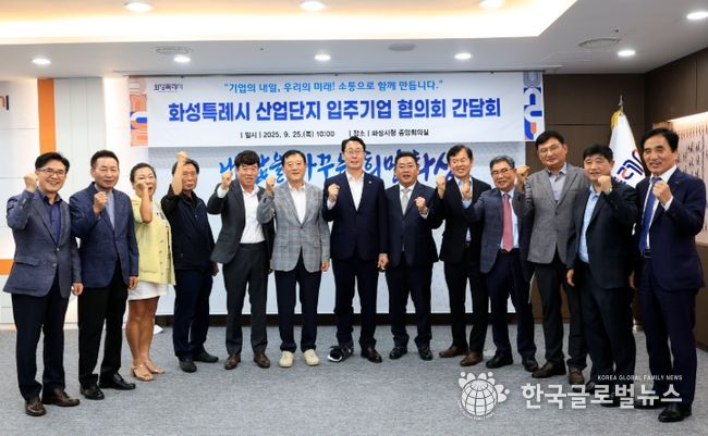 (한국글로벌뉴스 - 박소연 기자) 화성특례시가 25일 시청 중앙회의실에서 시와 기업 간의 상생 협력 방안 논의를 위한 ‘산업단지 입주기업 협의회 간담회’를 개최했다.
