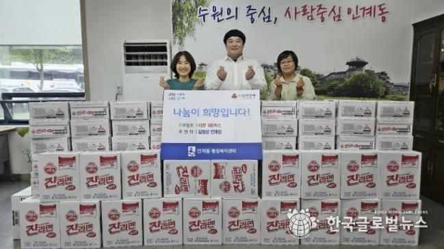 이에 박선옥 인계동장은 "매년 사랑 나눔을 실천하는 정재영 대표에 감사드리며, 나눠주신 라면은 어려운 이웃들이 따뜻한 추석을 보낼 수 있도록 소중히 전달하겠다."라는 말을 전했다.