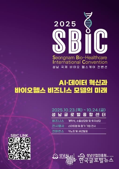 (한국글로벌뉴스 - 박소연 기자) 성남시가 주최하고 성남산업진흥원이 주관하는 ‘성남 국제 바이오·헬스케어 컨벤션(SBIC 2025)’의 참관 사전등록이 시작됐다.