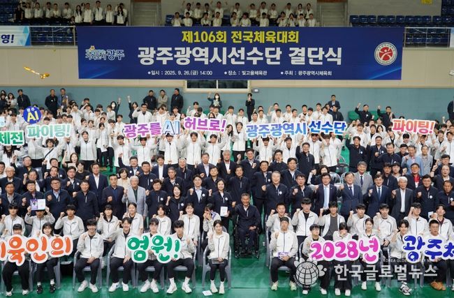(한국글로벌뉴스 - 박지형 기자) 광주광역시체육회(회장 전갑수)가 26일 오후 2시 빛고을체육관에서 ‘제106회 전국체육대회 광주선수단 결단식’을 열어 대회 필승을 위한 각오를 다졌다고 밝혔다.