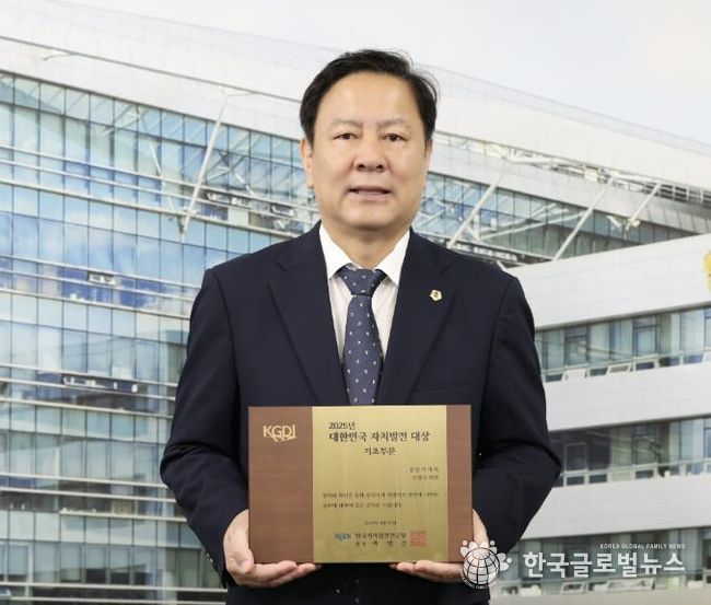 (한국글로벌뉴스 - 박소연 기자) 성남시의회 조정식 의원(정자동·금곡동·구미1동)이 한국자치발전연구원이 주관하고 한국지방자치학회, 한국지역개발학회가 후원하는 '2025년 대한민국 자치발전 대상'에서 기초의회의원 부문 수상자로 선정됐다. 시상식은 23일 백범 김구기념관 컨벤션홀에서 열렸다.