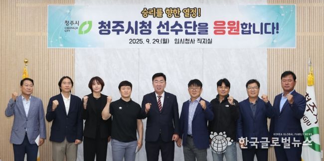 (한국글로벌뉴스 - 박지형 기자) 이범석 청주시장은 29일 임시청사 직지실에서 제106회 전국체육대회 출전을 앞두고 있는 직장운동경기부 선수단 감독들을 만나 격려했다.