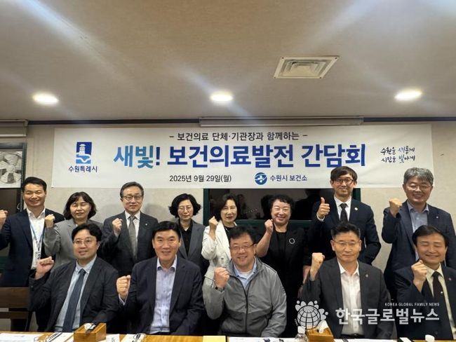 (한국글로벌뉴스 - 박소연 기자) 수원특례시는 29일 ‘2025년 3분기 새빛! 보건의료발전 간담회’를 열고 건강생활지원센터 설치·운영, 캄보디아 수원마을 의료자원봉사 등 주요 안건을 논의했다.