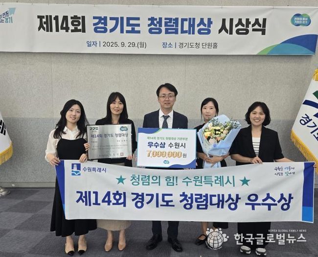 (한국글로벌뉴스 - 박소연 기자) 수원특례시가 제14회 경기도 청렴대상에서 우수상으로 선정됐다. 시상식은 29일 경기도청 단원홀에서 열렸다.