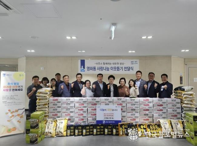 (한국글로벌뉴스 - 박소연 기자) 수원시 장안구 영화동 행정복지센터는 지난 29일 추석 명절을 맞아 관내 소외된 이웃들과 다함께 따뜻한 명절을 보내기 위한 ‘사랑나눔 이웃돕기 전달식’을 개최했다.