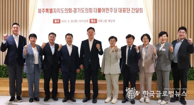 (한국글로벌뉴스 - 박소연 기자) 경기도의회 더불어민주당이 30일 예담채에서 교섭단체 운영현황 공유 및 상호 교류·협력 강화를 위해 경기도의회를 방문한 제주도의회 더불어민주당과 간담회를 진행했다.