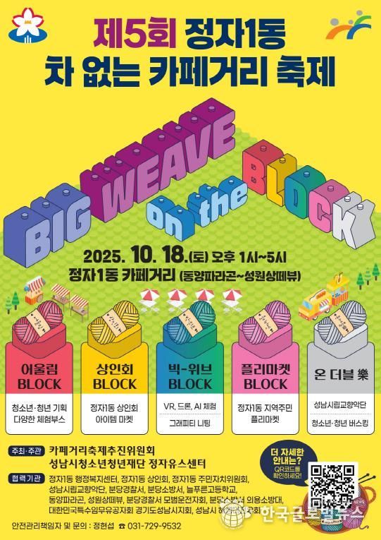 (한국글로벌뉴스 - 박소연 기자) 성남시 분당구 정자1동 카페거리가 오는 10월 18일 하루 동안 시민들의 발걸음과 음악으로 채워진다. 카페거리축제추진위원회와 성남시청소년청년재단 정자유스센터가 주관하는 '제5회 정자1동 차 없는 카페거리 축제'가 이날 오후 1시부터 열린다.