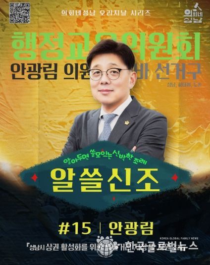 (한국글로벌뉴스 - 박소연 기자) 성남시의회는 ‘알쓸신조-안광림 의원 편’영상을 10월1일 17시 시의회 공식 SNS에 게시한다.