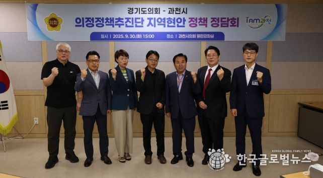 (한국글로벌뉴스 - 박소연 기자) 경기도의회 의정정책추진단은 30일 과천시 회의실에서 ‘지역 현안 정책 정담회’를 열고 과천 지역의 주요 정책 현안과 경기도의회 차원의 지원 방안을 논의했다.
