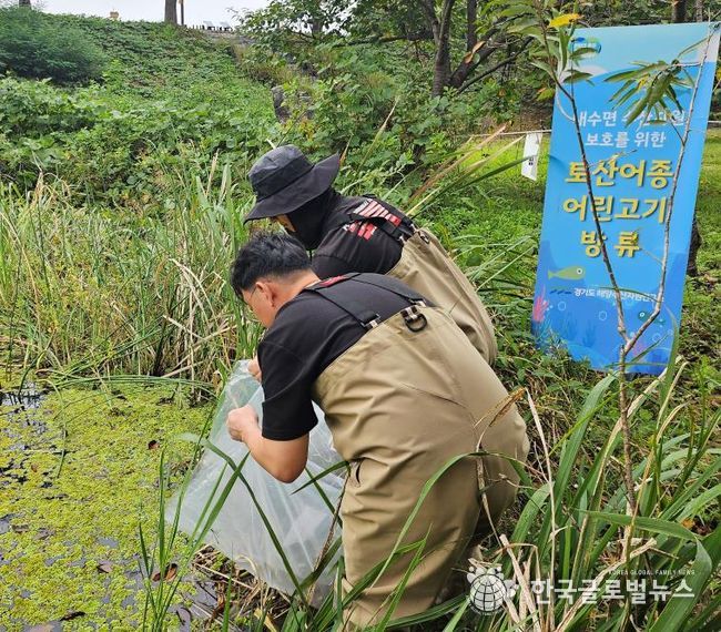 (한국글로벌뉴스 - 박소연 기자) 경기도해양수산자원연구소가 토종 민물고기 종 보존과 하천 생태계 복원을 위해 경기도 보호 어종인 버들붕어 치어 1천 마리를 9월 30일 광주시 경안천습지생태공원에 방류했다.