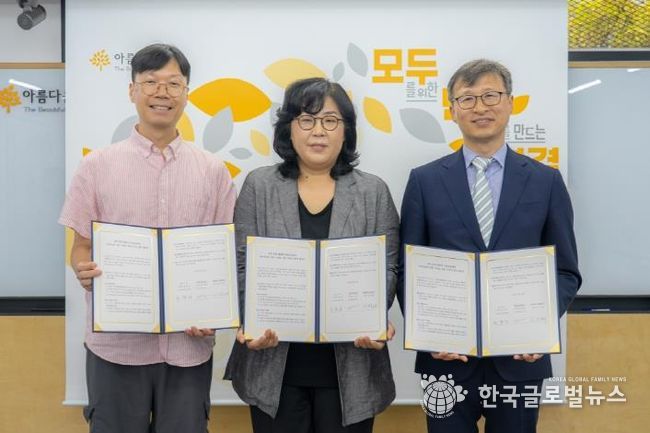 지난달 30일 서울 종로구 아름다운재단에서 열린 협약식에는 공정식 경기도 사회혁신경제국장, 김진아 아름다운재단 사무총장, 김정태 MYSC 대표가 참석했다.