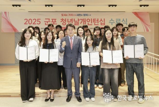 (한국글로벌뉴스 - 박소연 기자) 군포시는 9월 30일 군포 청년날개 인턴십(체험형 공공인턴)을 성공적으로 마친 인턴들의 수료식을 개최했다.