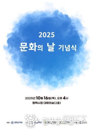 (한국글로벌뉴스 - 박소연 기자) 평택문화원이 주최하는 ‘2025 문화의 날 기념식’이 오는 10월 16일, 오후 4시, 평택시청 대회의실에서 개최한다. 이번 행사는 평택문화원, 평택시문화재단, (사)평택예총이 공동으로 주관하고, 평택시가 후원한다.