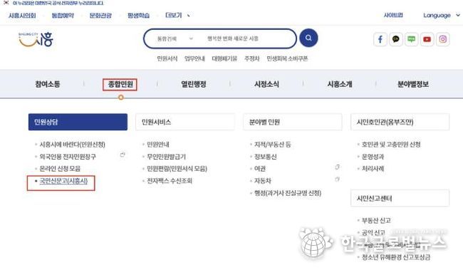 시는 국가정보자원관리원 화재로 국민신문고 접속이 불가능해지자, 민원 행정 공백을 줄이기 위해 시흥시 홍보담당관을 통해 시청 누리집에 ‘국민신문고(시흥시) 창구’를 임시 개설ㆍ운영하기로 했다.