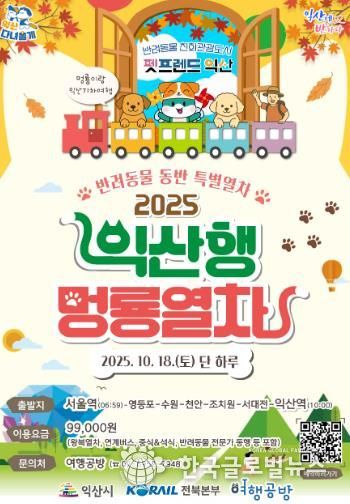 (한국글로벌뉴스 - 김정현 기자) 익산시가 반려동물과 함께 자연과 축제를 즐길 수 있는 열차 여행을 선보인다.