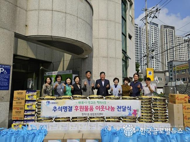 (한국글로벌뉴스 - 박소연 기자) 수원시 장안구 정자1동은 지난 1일, 추석 명절을 앞두고 관내 단체, 기업, 개인 등에서 기탁한 성금과 물품을 어려운 이웃들에게 전달하는 ‘추석 이웃사랑 나눔 전달식’을 개최했다.