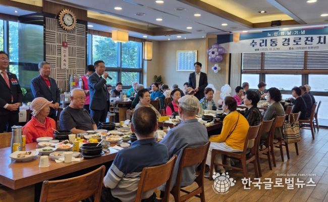 (한국글로벌뉴스 - 박소연 기자) 군포시 수리동 주민자치회(회장 고진해)는 제29회 노인의 날을 맞아 지난 10월 2일 수리동 어르신들을 대상으로 경로잔치를 개최했다. 이번 행사는 하은호 군포시장, 이학영 국회부의장 등 여러 내빈과 수리동 직능단체장들이 어르신 100여 명과 뜻깊은 자리를 함께했다.