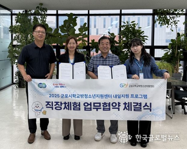 (한국글로벌뉴스 - 박소연 기자) 군포시청소년재단(대표이사 김덕희), 군포시학교밖청소년지원센터(센터장 강연미)는 시각디자인 분야로의 진학과 진로를 희망하는 학교 밖 청소년을 지원하기 위해 관내 디자인 전문업체인 ㈜은진과 직장체험 업무협약을 체결했다고 밝혔다.
