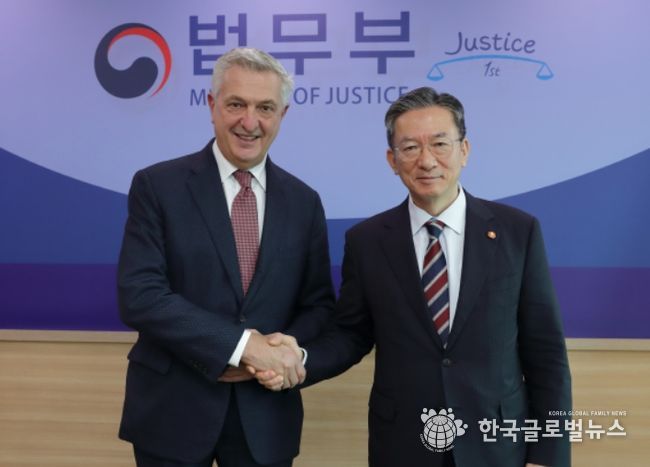 (한국글로벌뉴스 - 아셀 기자) 정성호 법무부 장관은 10월 17일 오전 10시 정부과천청사에서 필리포 그란디(Filippo Grandi) 유엔난민기구(UNHCR) 최고대표를 만나, 글로벌 난민위기 해결을 위한 국제사회의 연대와 책임분담의 중요성을 강조하고 협력 강화 방안을 논의했다.