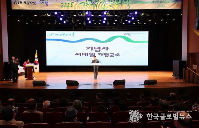 (한국글로벌뉴스 - 박소연 기자) 가평군은 17일 가평문화예술회관에서 ‘제58회 가평군민의 날 기념식’을 성황리에 개최했다고 밝혔다. 이날 행사에는 서태원 가평군수를 비롯해 김동연 경기도지사, 김용태 국회의원, 김경수 군의회 의장과 의원, 지역 기관 및 사회단체장, 군민 등 600여 명이 참석해 군민의 날을 축하했다.