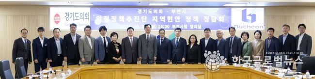 (한국글로벌뉴스 - 박소연 기자) 경기도의회 의정정책추진단은 20일 부천시청 회의실에서 ‘지역 현안 정책 정담회’를 열고 부천 지역의 주요 정책 현안과 경기도의회 차원의 지원 방안을 논의했다.