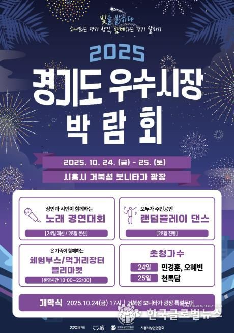 (한국글로벌뉴스 - 박소연 기자) 시흥시는 오는 10월 24일부터 25일까지 이틀간 거북섬 보니타가 광장에서 ‘2025년 제11회 경기도 우수시장 박람회’를 개최한다.