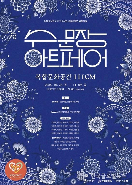 (한국글로벌뉴스 - 박소연 기자) 수원문화재단은 2025 문화도시 조성사업 로컬콘텐츠 유통지원 ‘수문장 아트페어’를 오는 10월 23일부터 11월 9일까지 18일간 복합문화공간 111CM에서 개최한다.