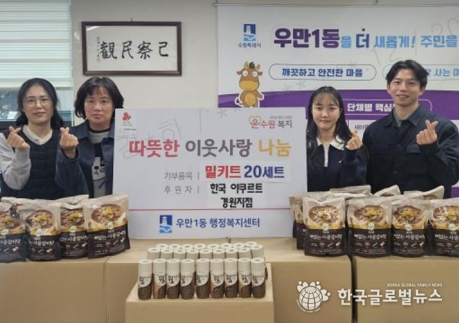 김미라 우만1동장은 “경제적으로 어려운 시기에 따뜻한 마음을 보내주신 한국야쿠르트 경원지점에 진심으로 감사드린다”며 “소중한 정성이 꼭 필요한 가정에 잘 전달될 수 있도록 하겠다”고 감사의 뜻을 전했다.