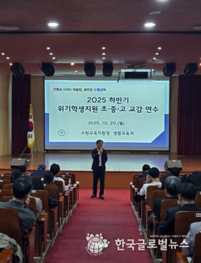 (한국글로벌뉴스 - 박소연 기자) 경기도수원교육지원청은 10월 20일 교육복지종합센터에서 초·중·고등학교 교감을 대상으로 ‘2025 하반기 생명살림 및 위기학생지원 특별 연수’를 운영했다.