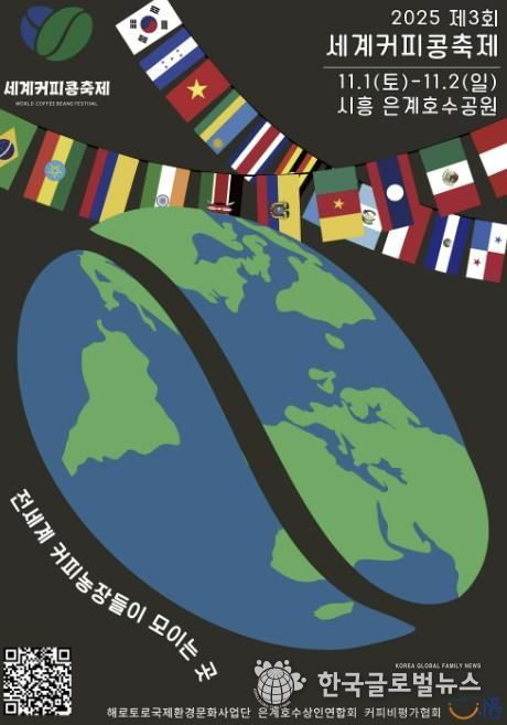 (한국글로벌뉴스 - 박소연 기자) ‘제3회 세계커피콩축제’가 오는 11월 1일부터 2일까지 양일간 시흥시 은계호수공원에서 개최된다. 이번 축제는 커피비평가협회와 세계커피콩축제위원회가 운영하며, 해로토로국제환경문화사업단이 주최ㆍ주관하고 시흥시가 후원한다.