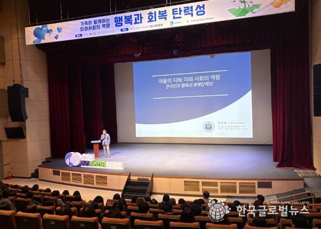 김경일 아주대학교 사회과학대학 심리학과 교수가 ‘가족이 함께하는 미래사회의 역량: 행복과 회복 탄력성’을 주제로 특강을 했다.