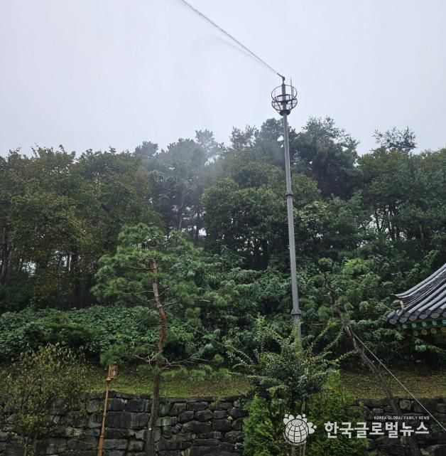 봉녕사 산불소화시설은 19m 높이의 수관수막타워 2기와 40톤 물탱크, 엔진펌프로 구성돼 있으며, 산불 발생 즉시 수막을 형성해 불길 확산을 차단하고 속도전이 관건인 초기 진화에 즉각 대응할 수 있도록 설계됐다. 이번 시운전에서는 장비 작동, 살포 압력, 분사 시간 등을 점검했으며 모두 정상 작동이 확인됐다.